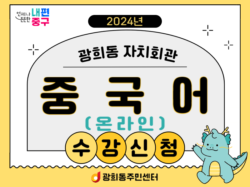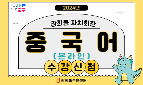 - 내용- 운영시간 : 화, 목 19:00 ~ 21:00 - 수업장소 : 온라인 화상수업 - 수 강 료 : 분기별 60,000원(월 2만원) - 결제방법 : 광희동 주민센터 2층 주민행정팀 방문(카드, 현금) or 계좌이체 * 계좌번호 : 우리은행 1006-201-334682(예금주 : 광희동주민자치위원회) 감면혜택 적용 필요 시 ★★증빙서류 구비 필수(미첨부시 감면 적용이 불가능합니다)★★ - 65세 이상 중구민 감면 혜택 : 주민등록등초본 - 기초생활수급자, 저소득한부모가족, 등록장애인, 국가유공자/독립유공자 본인 및 유족&가족 : 해당 증빙 서류(수급자 증명서, 유공자증 및 복지카드 등)