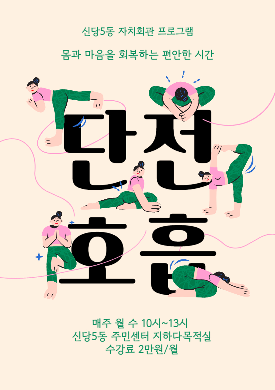 - 신청절차1. 온라인 접수 또는 방문 접수 (방문 접수 가능 시간 : 09시~18시) * (온라인, 오프라인) 신청서 접수 → (주민센터) 심사 → (주민센터) 수강 대상자 통보 → (수강생) 수강료 결제 → 수강확정 * 온라인 접수 3.18.(월)~3.22.(금) * 방문접수 3.18.(월)~3. 29.(금) 2. 정원 초과 접수 시 우선순위에 따라 접수 순위 부여 * 1순위 신당5동 주민 신규회원 * 2순위 : 신당5동 주민 기존회원 * 3순위 : 중구민 신규회원 * 4순위 : 중구민 기존회원 * 5순위 : 타구민 3. 심사 이후 접수 가능여부 개별연락 4. 수강확정자는 「주민센터 주민행정팀」에 방문하시어 수납완료 후 프로그램 수강 가능