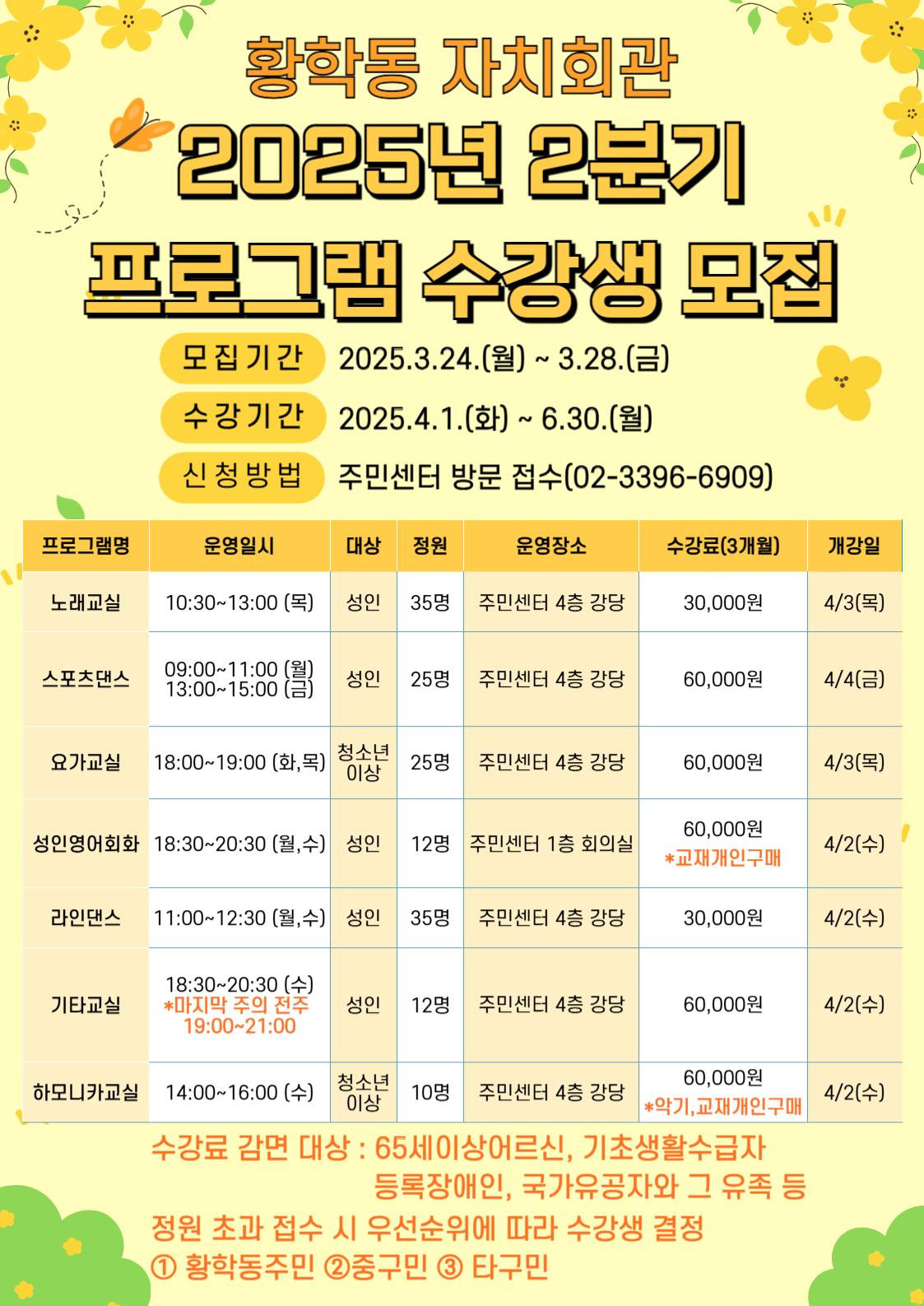 2025년 2분기 황학동 자치회관 프로그램 수강 신청