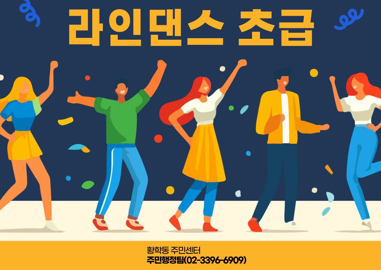 - 내용2025년 4분기 황학동 주민센터 자치회관 프로그램 안내 - 프로그램명 : 라인댄스(초급) - 운영시간 : 매주 화요일/목요일 15:00~16:00 - 정원 : 25명 - 운영장소 : 황학동 주민센터 4층 강당 - 수강료 : 10,000/월